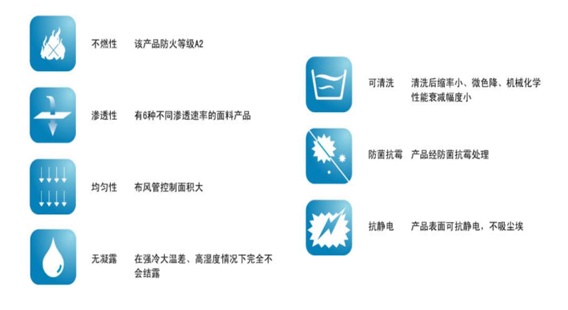 Bangkees-FS系统是以不燃布面为基材的风管产品,是用于防火要求高的制冷暖通系列,此系列有三种送出风方式:A纯粹不燃渗透型,用于冷气慢透的舒适场所。B可配合条缝网格送出冷热风。C还可以在不燃级渗透布面上开孔或加装喷口等以获得较远岗位的有效送风和实现受控高大区域空气的冷热置换。